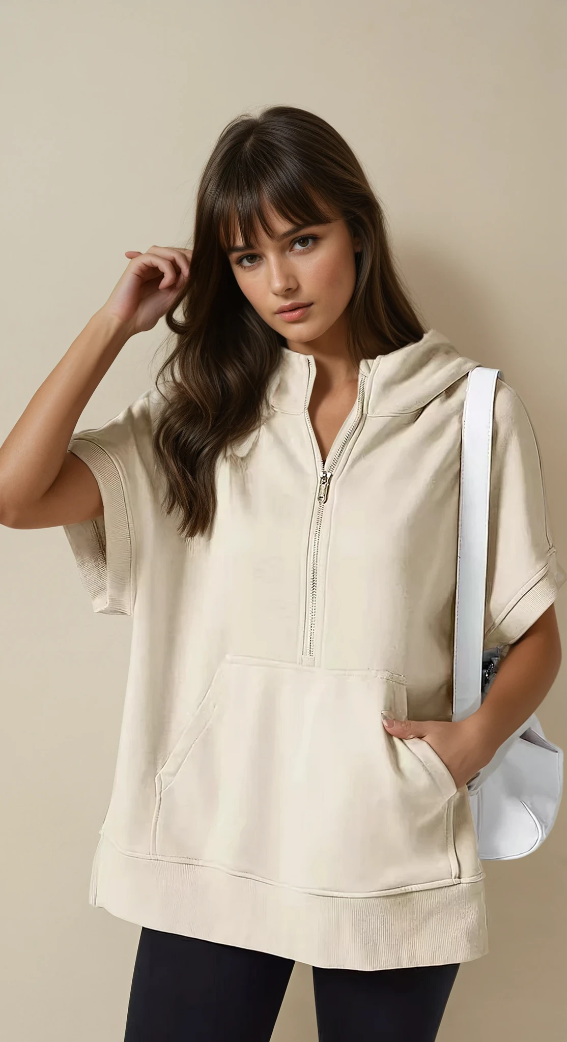 - Short-sleeve hoodie design blends casual comfort with a sporty edge
